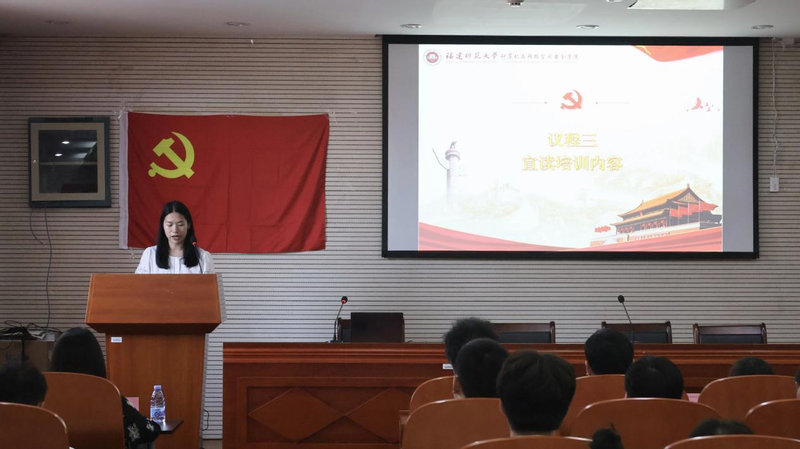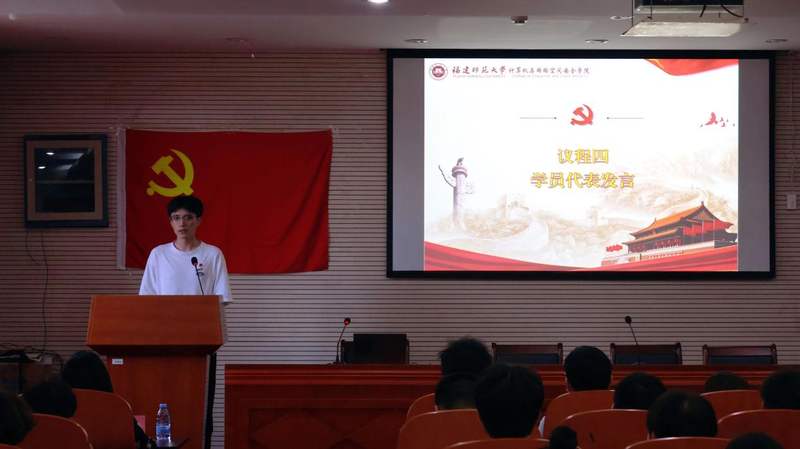 赖敏老师宣读培训内容,并对党校培训目的、纪律与考核要求等有关事项作了说明。杜健鸿同学作为学员代表发言表态,承诺将自觉遵守培训班纪律,认真学习,努力将培训内容学深悟透。