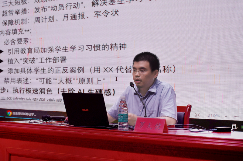 罗天健以《AI大模型赋能教学及管理》为题,详细介绍了AI大模型的基本原理、发展现状以及使用大模型的提示词设计技巧。他结合国内常见AI大模型DeepSeek、即梦、豆包、Kimi、讯飞智文以及扣子智能体等,分享了中小学教学工作中常用的案例及应用。