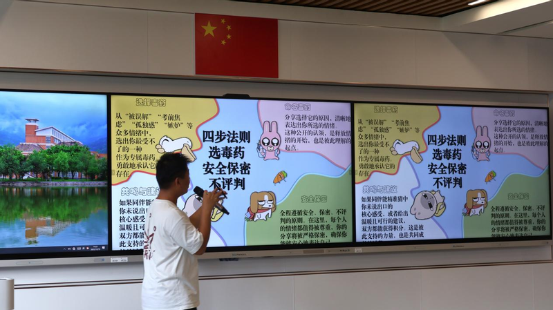 活动设置了“色彩印记签到”“情绪互动交流”“创意手作疗愈”三个环节。在“色彩印记签到”环节,同学们自主选择喜欢的颜料,以色彩为媒,在主题旗帜上按下掌印或勾勒创意图案,用独特印记定格参与瞬间。在“情绪互动交流”环节,同学们将写有烦心事与鼓励话语的便利贴投入盲盒并随机抽取,大家相互鼓励和安慰,在坦诚倾诉中收获支持与暖心建议。在“创意手作疗愈”环节,同学们领取材料包制作情绪书签,用彩笔赋予书签专属意义并写下寄语,贴成“太阳”造型的暖心墙,让正能量彼此传递。