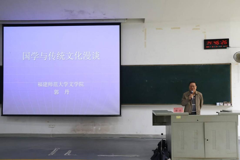 近日,福建省教学名师、文学院关工委主任郭丹教授为我院新生作《国学与传统文化漫谈》专题讲座。学院关工委主任黄榕宁,2025级辅导员曹瑞雪以及2025级网络空间安全专业、人工智能专业新生参加本次讲座。